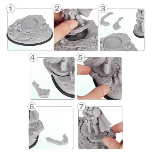 この24パーツのレジンキットには、105x70mmの楕円形ジオラマベースに差し込んで展示できる40mmゲーミングベースが付属している。