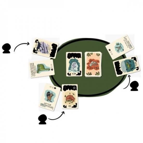 全員が手番を一度行い、一番小さな数字の災害カードを持っている人がHPを1点失います。ただし、恐竜たちはそれぞれ固有の能力を持っており、災害カードの効果との組み合わせによって、最小値が繰り上がったり、HPを2点失ったり、強い数字が0扱いになったりするため、選んだ数字が大きいから生き残れるとは限りません。誰かの恐竜のHPが0になったら、その時点で生き残っていたプレイヤーが全員勝利となります。なんとかしてピンチを乗り切り、少しでも長く生き残りましょう!