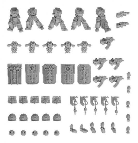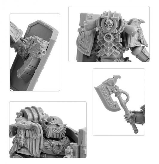 このマルチパーツレジンキットでは、ウルトラマリーン軍団の寵愛を受ける戦士、インヴィクタラス・スゼレイン5体を組み立てることができます。これらの高貴なスペースマリーンは、彫刻された鷲から軍団の紋章を帯びたプテルゲまで、XIII軍団のシンボルと栄誉をあしらった精巧に作られたアーティフィサーアーマーを身にまといます。各スゼレインは、マクラーグの名が刻まれたレガティン斧、ボルトピストル、そして豪華に装飾されたアルギラム模様のボーディングシールドを装備しています。キットには、ボルトピストル2丁をプラズマピストルに交換するためのパーツも含まれています。