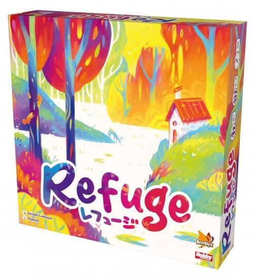 『レフュージ』はいつ嵐が来るのかドキドキハラハラのスリルが楽しめる、シンプルなルールで遊びやすく、美しいアートワークで見た目にも楽しいバッグビルドのボードゲームです。タイルはゲームごとに一部しか使用しないため、毎回異なる組み合わせのハイキングコースで遊ぶことが可能です。