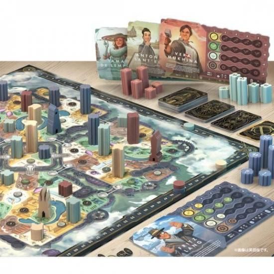 本作は、2008年ドイツ年間ゲーム大賞ノミネート作の『Metropolys』をベースに、Sébastien Pauchon氏自らが新たに造り上げたゲームです。ビルの数字で競りを行う基本的なシステムは同じですが、個人ボードや新要素の「驚異の建造物」が追加され、得点方法が増えるなど、よりリプレイ性高く生まれ変わっています。