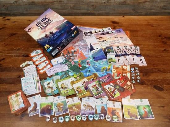 メインボードは、さまざまな地域に分かれた山がそびえ立つ野生生物保護区を表しています。この自然保護区の各場所は、ハイキングルートや道路、川、雪道、クライミングルートなどでつながっており、それらの場所に移動して、野生動物たちを観察することで個人ミッションをクリアし、ボーナスを獲得します。そのためには手札をプレイすることによって移動する必要がありますが、カードは「自分のカードを両隣のプレイヤーに割り当てる」ことで配分されるため、自分の行動だけではなく、全体を見据えたうえで各自の行動も配慮しなければなりません。あなたたちは各ミッションをクリアし、最後のミッションまで全うできるでしょうか?