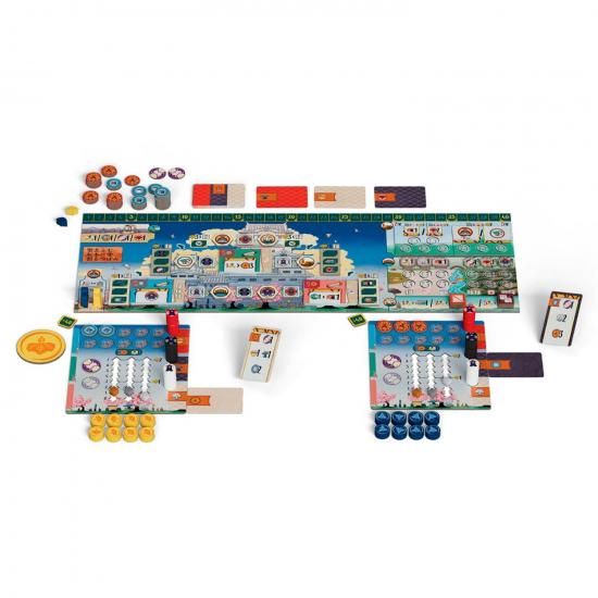 さらに、石灯の色ごとに異なる資源(石・貝・穀物など)を往路・復路いずれでも獲得可能。「石灯カード」で資源の獲得量を強化し、行動計画に厚みを持たせましょう。