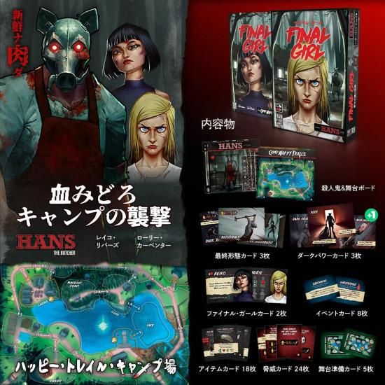 キャンプ場を血に染めるのは、冷酷無比な屠殺屋ハンス。逃げ場なき「ハッピー・トレイル・キャンプ」で、あなたは生き延びることができるのか。