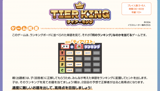 「ティア・キング」はみんなでランキング表(ティアリスト)を作るパーティ推理ゲームです。